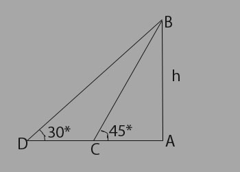 2. A man standing at a point C is watching the top of a tower, which makes an angle of elevation of 30 degree. The man walks some distance towards the tower to watch its top and the angle of elevation become 60 degree. What is the distance between the base of the tower and point C.