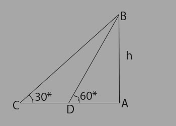 1. A man standing at a point C is watching the top of a tower, which makes an angle of elevation of 30 degree. The man walks some distance towards the tower to watch its top and the angle of elevation become 60 degree. What is the distance between the base of the tower and point C.