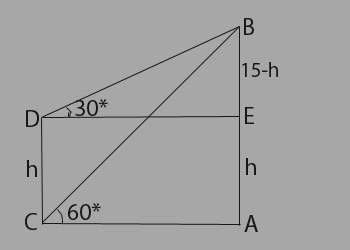 => \frac{15}{\sqrt{3}} = \sqrt{3}(15-h) \\